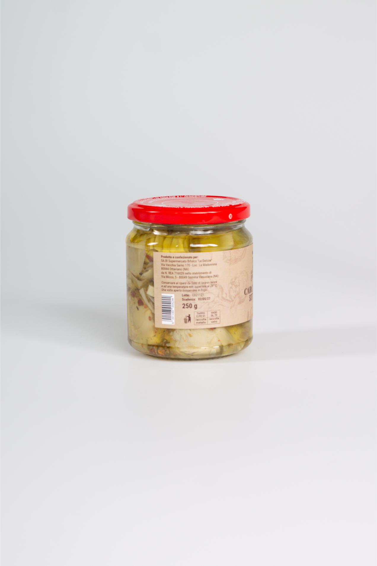 Carciofini teneri e selezionati, lavorati a mano e conservati in olio extravergine di oliva e con erbe aromatiche. Preparati secondo la tradizione, mantengono intatto il loro sapore delicato e genuino. Perfetti come antipasto, contorno o per arricchire insalate e piatti freddi. Qualità artigianale in un pratico formato da 250 g. Ingredienti: carciofini, olio extravergine di oliva, olio di girasole,aceto,aglio,origano,sale,peperoncino.